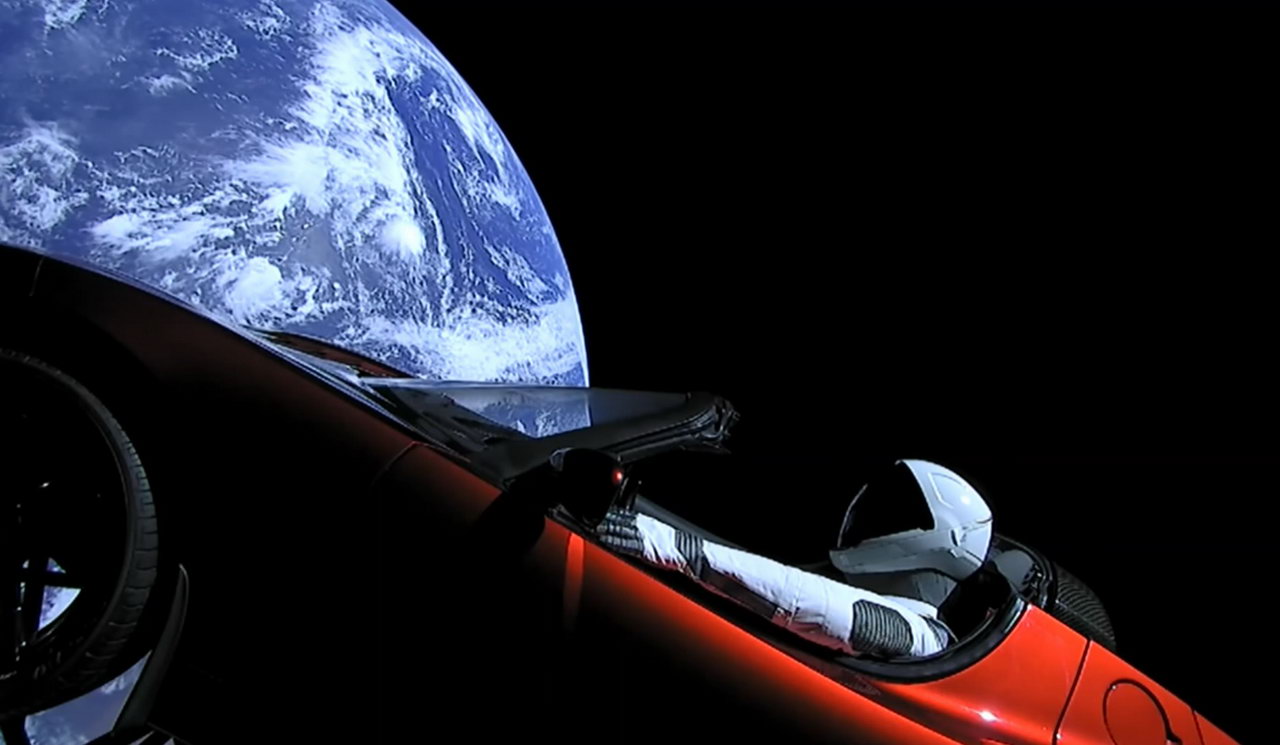 Электрокар с манекеном в скафандре за рулем, под гремящую из динамиков акустической системы композицию Дэвида Боуи “Space oddity”, начал свой бесконечный путь в глубины космоса. Интересно, что подумают о нас братья по разуму в далеких галактиках, обнаружив через миллионы лет этот «аппарат»?
